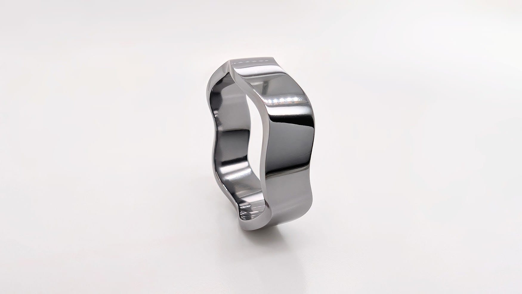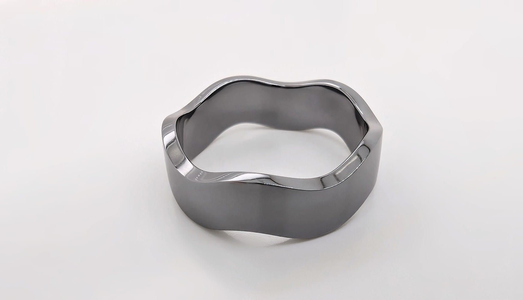 The groom’s wedding ring cut from a tube of 2mm thick tantalum and hand filed to create the curved design and finished to a high polish. We’re really grateful that the customer requested something out of the ordinary which has allowed us to work with this exciting new material… We always love a challenge!